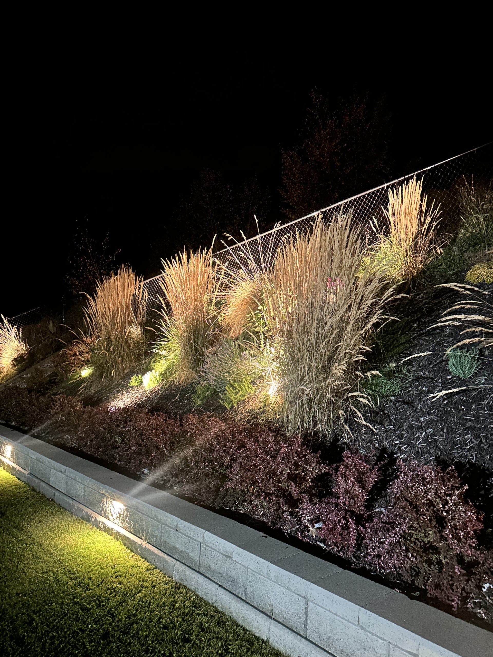 Thoughtfully layered illumination for pathways, trees, gardens, water features, and key focal points.